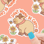 'Don't Worry Be Capy' vinyl sticker by Turtle's Soup.