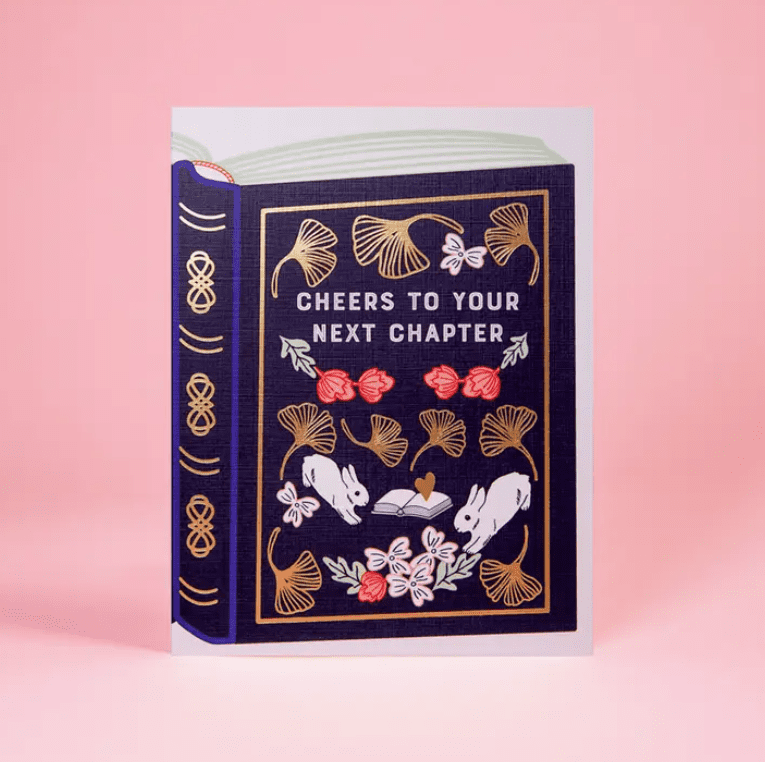 Flip the page onto the next adventure! These folded cards are 4.25″ x 5.5″ (A2), printed on premium arctic white smooth 100lb cardstock with Gold Foil detailing. High-quality envelope with Euro flap included.