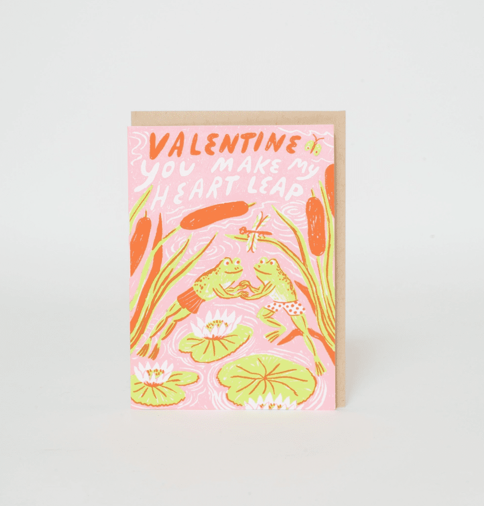 Leaping with love for you! Letterpress printed by hand in Portland, Oregon. All about this card: Comes with a kraft envelope. -Dimensions: 4bar (3.75″ x 5.25″) -Designed by Phoebe Wahl.