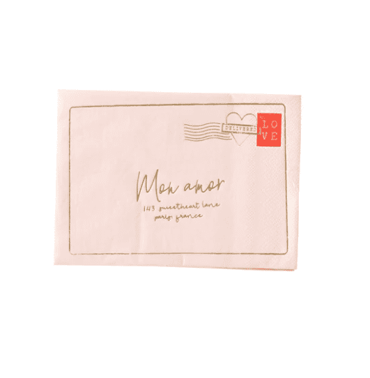 Send your guests some love with these whimsical love note napkins. Designed to look like a Valentine’s Day love note, and featuring gold foil accents, these napkins add the perfect touch to a Valentine’s Day tablescape, or spread some cheer at a Galentine’s cocktail party!